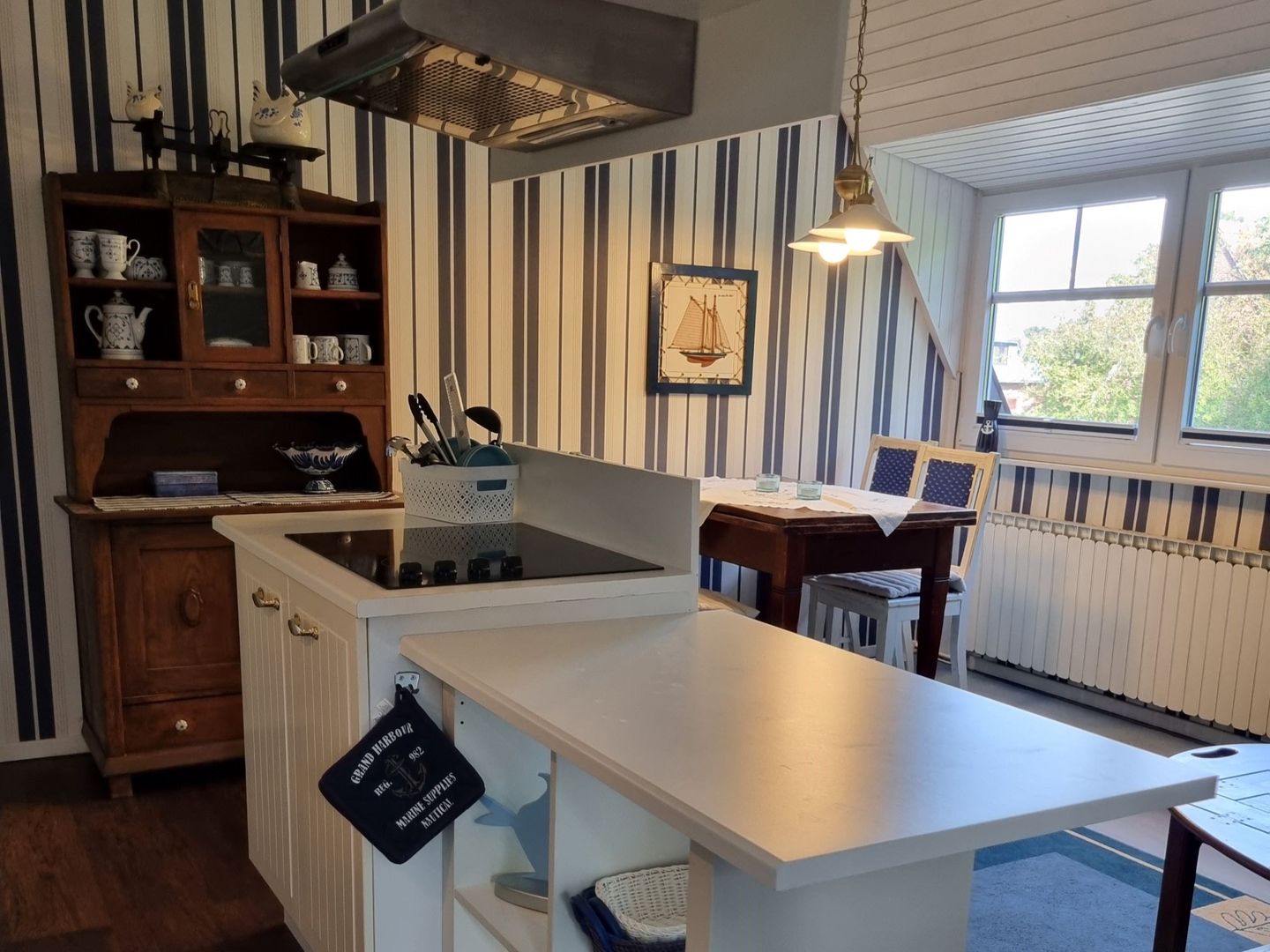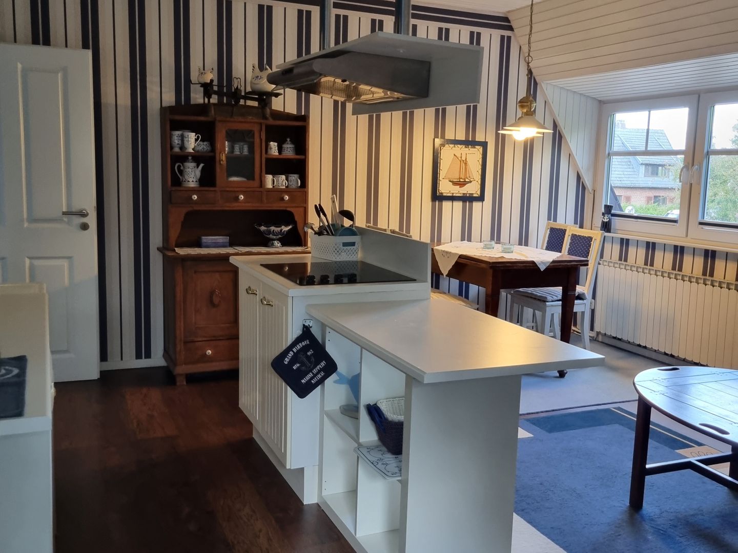 Typisch norddeutsch, warm und herzlich eingerichtet, lädt der großzügige Wohn- und Essbereich mit offener Kochstelle zum gemeinsamen Kochen, Genießen und Klönen ein – sei es bei einer Tasse Ostfriesentee mit Kluntjes oder einem geselligen Abend zum Spielen oder „Klönen“.
